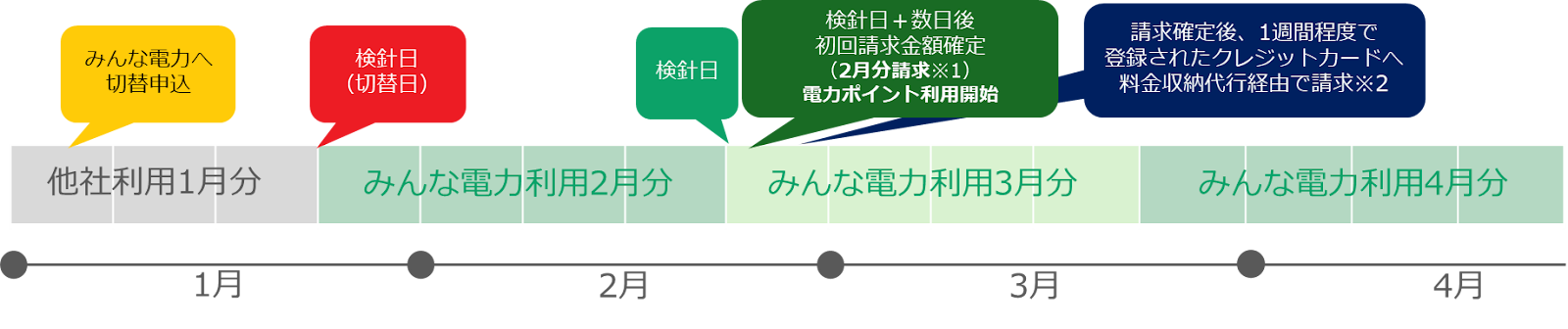 ※2 ご利用のクレジットカード会社の定める引き落とし日に、利用明細「みんな電力」」にてお引き落としされます。